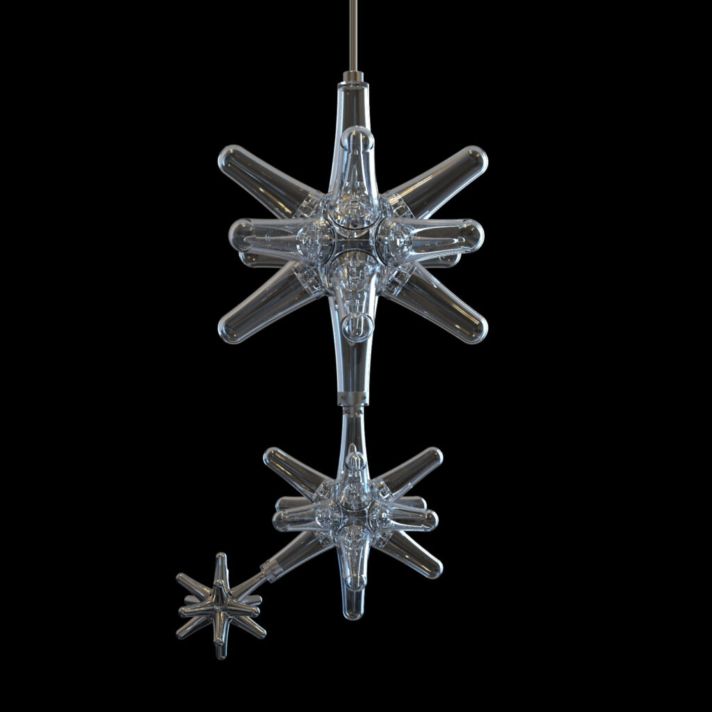 Twist L009 twirled glass element. Glass elements are suspended from aircraft cable and connected to the ceiling/surface with cable ceiling couplers. Each glass element includes 10 feet (standard) of aircraft cable and a cable ceiling coupler for mounting. Lighting elements are sold separately. Offered in clear glass. Each piece of suspended glass is handcrafted, so […]